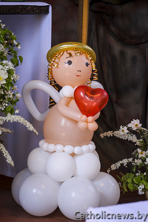 У нядзельны святочны дзень дзеці разам з бацькамі пачалі збірацца за гадзіну да ўрачыстасці. Адным з першых падарункаў для ўсіх стала ўпрыгожванне святыні. Дзеці і дарослыя, як толькі адчынялі дзверы храма, заміралі на хвілінку ад убачанага, а на тварах можна было заўважыць здзіўленне і радасць. Такога ўпрыгожвання мясцовы касцёл яшчэ не бачыў.