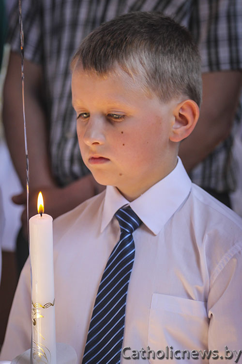 Урачыстасць І святой Камуніі распачалася на вуліцы, калі дзеці прасілі бласлаўлення ў сваіх бацькоў. Затым, запаліўшы свечкі, дзеці і бацькі працэсіяй урачыста ўвайшлі ў святыню.