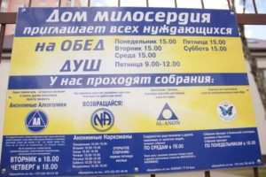 Напомним, также в Доме милосердия регулярно собираются группы Анонимных Алкоголиков, Анонимных Наркоманов и Ал-Анон (для родственников и близких алкоголиков или наркоманов).