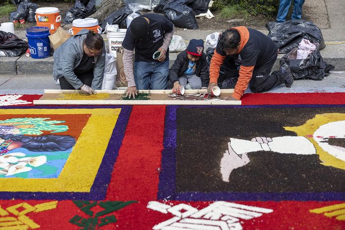 Работа над 27-метровым ковром завершилась к двум часам дня, после чего некоторые мастера, которые называют себя «гуате-майя», остались охранять его до захода солнца, когда по ковру прошла процессия прихожан, собравшихся на богослужения Страстной пятницы, и затоптала красочные шедевры.