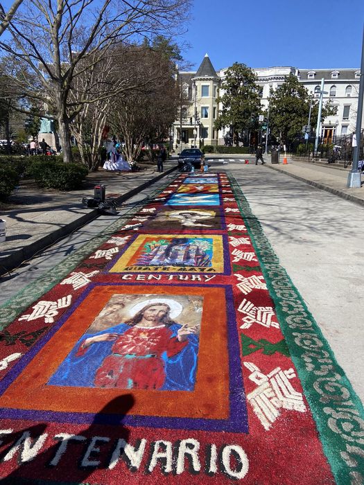Традиция подобных уличных ковров существует в Гватемале и прочих странах Латинской Америки. В Гватемале их готовят на каждое воскресенье в период Великого поста и под шествия Страстной недели. Ковры-альфомбра – старинная традиция племени мам, обитающего в южной Мексике и в западных горах Гватемалы. Неудивительно, что Санчес привез это искусство в США более 20 лет назад. Джулия Санчес, его сестра, считает, что очень важно научить ее троих детей, родившихся в США, изготовлению альфомбры, поскольку тем самым они усваивают и несут в следующее поколение наследие предков, наряду с прочими племенными традициями вроде игры на маримбе.