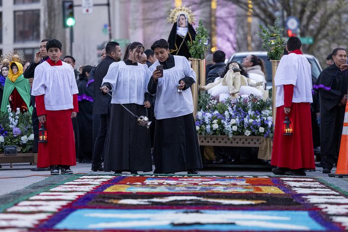 Во время праздничного шествия художники гуате-майя смешались с прихожанами и сами прошли по своему красочному ковру. «Все это правильно и хорошо, – говорит Санчес. – Мы создаем все это в жертву Господу».