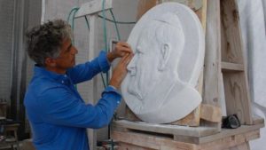 Мармуровы барэльеф з выявай Папы-славяніна быў павешаны на сцяне ў двары ўстановы. Ён мае форму дыска дыяметрам 85 см. Гэта праца іспанскага скульптара Аўгуста Дуенаса, выкананая з карарскага мармуру.