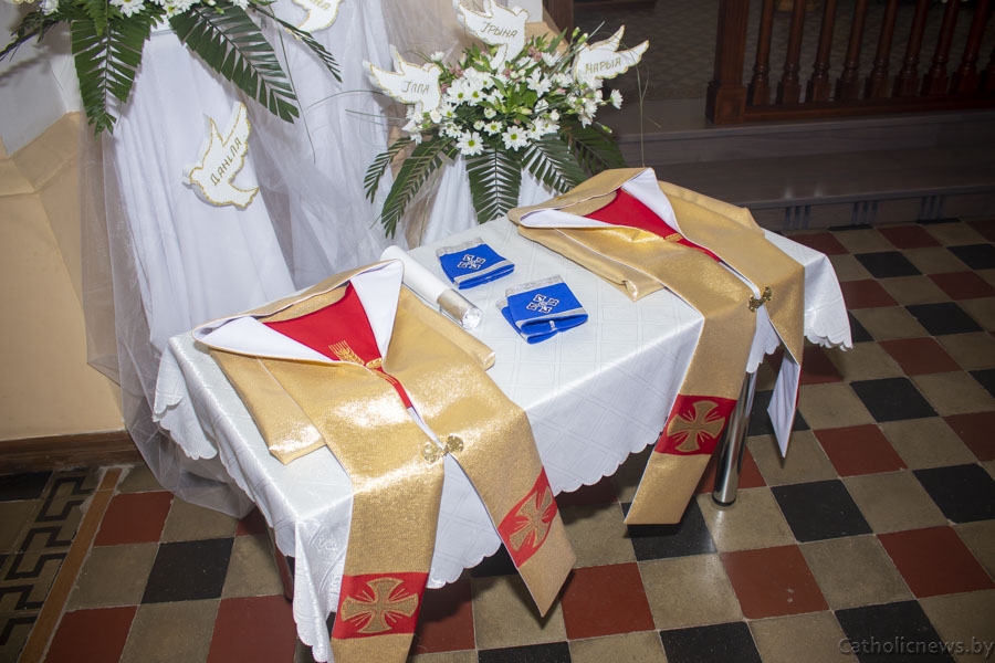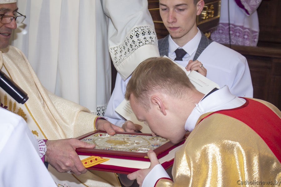 Затым адбылося ўскладанне рук, пасля чаго дыяканы, апрануўшы стулу і дальматыку, атрымалі Евангелле з рук біскупа і знак супакою.