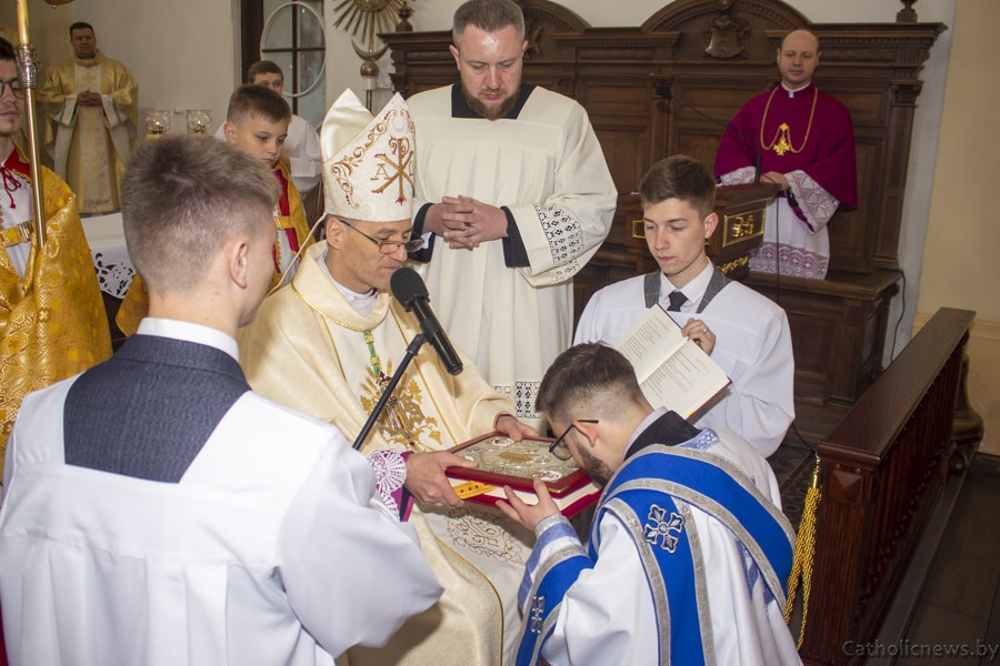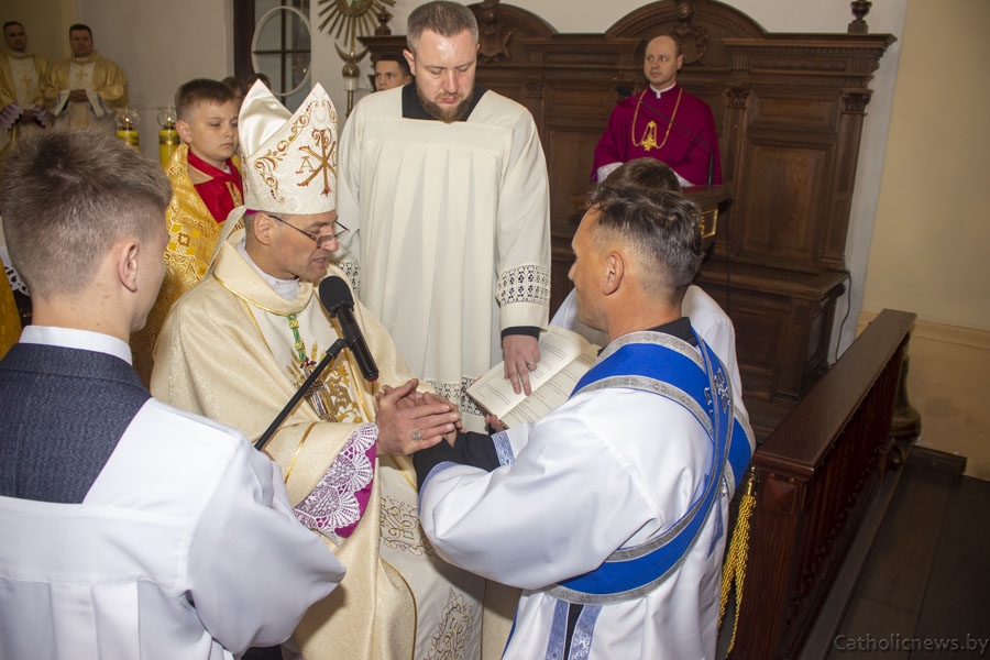 Пасля Літургіі слова пробашч парафіі ксёндз канонік Мікалай Ціхановіч звярнуўся да біскупа з просьбай удзяліць пасвячэнне дыяканату і засведчыў, што кандыдаты падрыхтаваныя і гатовыя прыняць пасвячэнне.