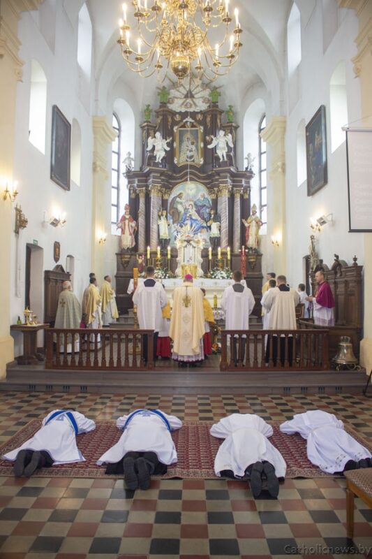 Кранальным момантам стала малітва Літаніяй да ўсіх Святых, падчас якой семінарыcты ляжалі крыжам перад алтаром, а вернікі звярталіся з малітвай да супольнасці Нябесных Заступнікаў.